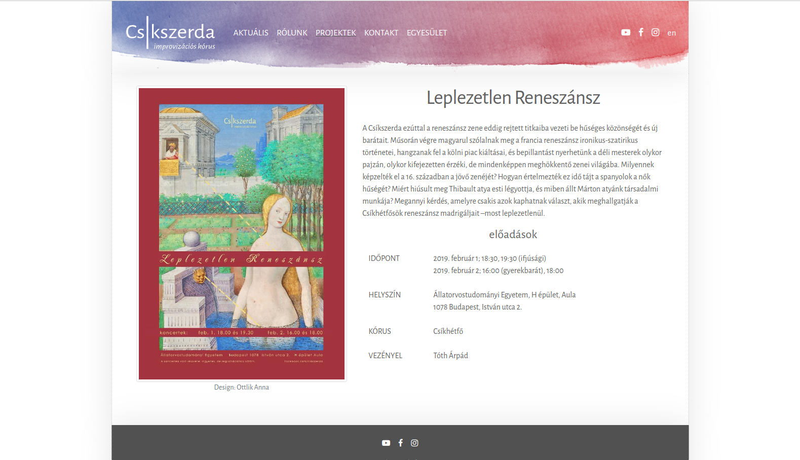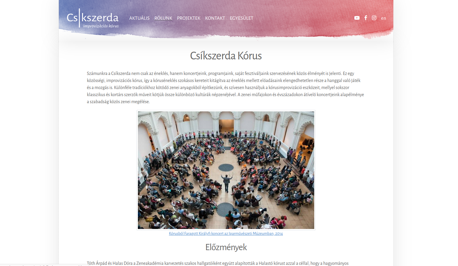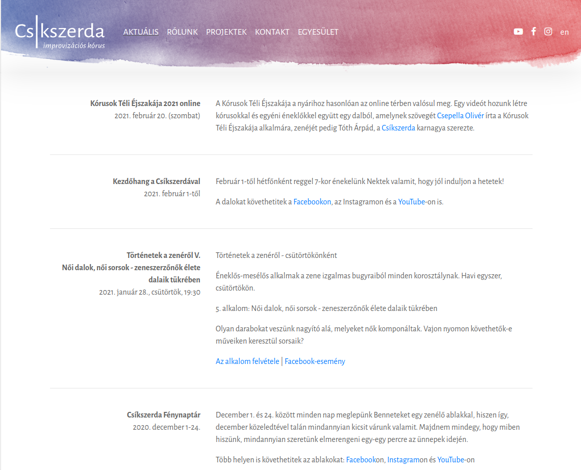 Csíkszerda is a huge choir and an association that deals with a lot of things. Accordingly, there is still a lot of potential in the development of the website. Back when I was writing the project launch document, I called the state we are in now „the first stage”.